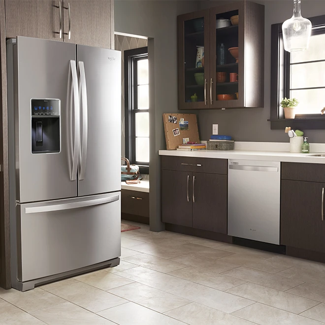 Optimize the storage of your everyday foods with this Whirlpool 27-cu ft French door refrigerator! Prevent stains and fingerprints with its stainless steel surface that easily wipes clean. In addition to providing you with quick access to ice cubes, the In-Door-Ice storage gives you additional space inside the refrigerator with its compact design. The unit includes an outdoor dispenser with EveryDrop filtration system so you can enjoy purified water without having to open the door. Plus, you’ll get more storage flexibility with its half-width spillproof glass shelves, gallon door bin, temperature-controlled full-width deli drawer, and platter pocket specifically designed for large and flat items. Backed by a 1-year limited warranty on parts and labour and a 5-year warranty on sealed refrigeration system parts only.