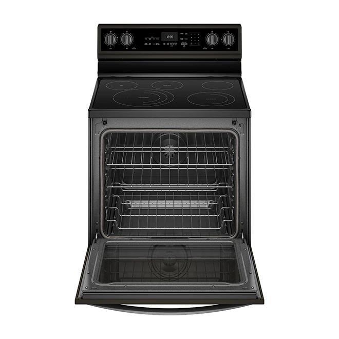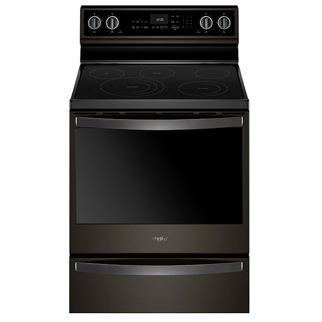 This Whirlpool electric range with smart technology has great features that bring modern convenience to making family meals. The Scan-to-Cook function lets you send cooking instructions directly to the oven, while voice control keeps your hands free for multi-tasking performance. The cooktop has five burners with two FlexHeat(TM) dual elements to accommodate your different pots and pans. Use the Frozen Bake(TM) function on this self-cleaning oven to skip preheating to get your meals to the table more quickly.
