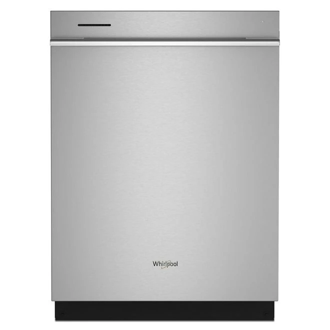 Clean larger loads with this Whirlpool dishwasher! Loading space is optimized thanks to its 15 place settings. It is equipped with a 2nd rack that you can adjust for taller items, a 3-piece silverware basket that can be moved for casserole dishes and pans, and a 3rd rack that can hold utensils or other flat items. Additionally, its 47 dB rated noise level is one of the quietest on the market. The dishwasher’s cycles bring versatility: a quick wash for smaller loads, a heavy wash for stubborn stains and food residue, and a soak and clean cycle for pots and pans. It even features a soil sensor cycle, which adjusts the normal cycle by detecting the level of dirt. Moreover, you can add options to your wash cycle, such as high temperature, sanitize and delay start options. Furthermore, you can check progress and remaining time with the cycle status indicator. Finally, its fingerprint-resistant finish ensures easy dishwasher maintenance.