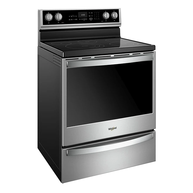 This Whirlpool electric range with smart technology has great features that bring modern convenience to your kitchen. The Scan-to-Cook function lets you send cooking instructions directly to the oven, while voice control keeps your hands free for multitasking performance. The cooktop has five burners with two FlexHeat dual elements to accommodate your different pots and pans. Use the frozen bake function on this self-cleaning oven to skip preheating to get your meals to the table more quickly. With a capacity of 6.4 cu. ft., you can cook several meals for the whole family at once!