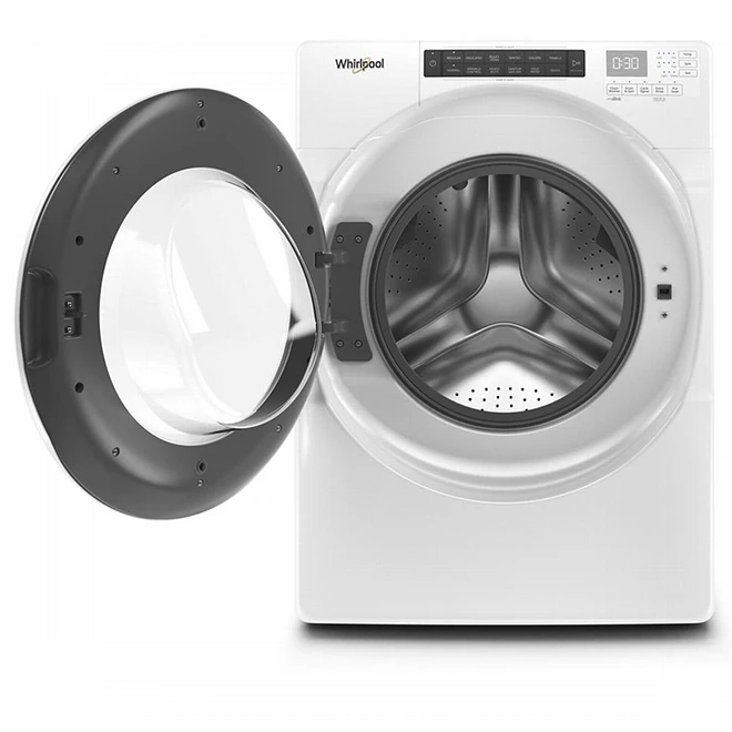 This versatile Whirlpool washer in a white finish combines ease of use with cleaning performance. Its maximized depth design adds installation possibilities, while its 5.0-cu ft capacity can accommodate very large loads like bedding. This unit features multiple cycles for your convenience, including a quick wash cycle for a small, slightly soiled loads, and a sanitize cycle, which eliminates 99,9% of household bacteria commonly found on fabrics. In addition, you can achieve significant energy savings while preserving the quality of your fabrics with the cold wash cycle. Finally, 37 settings can be customized to meet your specific needs. Backed by a 1-year limited warranty on parts and labour.