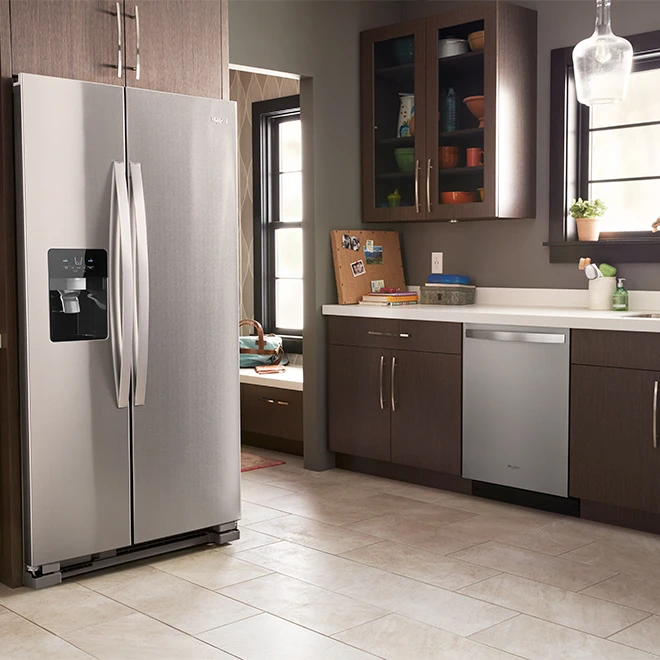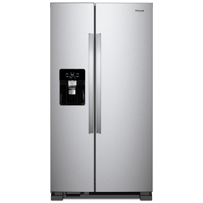 This Whirlpool 36-inch side-by-side refrigerator combines efficiency with modern functionalities. This Energy Star appliance is ideal for those who need a lot of storage, both in the refrigerator and freezer compartments, since it has a total capacity of 25 cu ft, and a freezer capacity of 9.1 cu ft. The side-by-side design will allow you to quickly see everything you have in the freezer, which is usually packed and unorganized in regular refrigerators. In both compartments, glass shelves are easy to clean and provide a lot of storage. The door bins are moveable so you can organize your refrigerator to your needs. There is no going back to ice trays when you have this exterior water and ice dispenser, especially with the EveryDrop filtration system, which will ensure you have water that is free of any bacteria on hand. The tap touch controls are easy to use and located at the front of the appliance so you don’t need to squeeze in between your food to get to the back. Besides all of its functionalities, this Whirlpool refrigerator has a modern design and stainless steel finish that will add elegance to any kitchen. It is backed by a 1-year warranty.