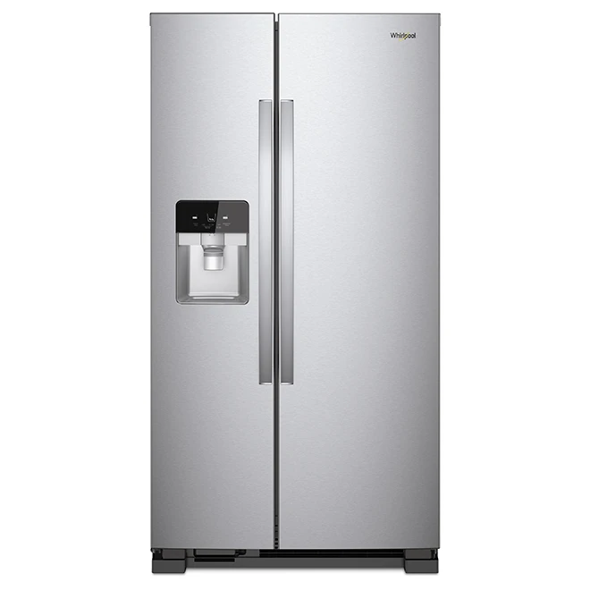 With tap touch controls and a beautiful stainless steel exterior, this side-by-side refrigerator from Whirlpool will bring a modern touch to your kitchen. This appliance is equipped with an exterior water and ice dispenser and offers plenty of storage options thanks to frameless glass shelves, a deli drawer, adjustable door bins, humidity-controlled crispers, and a can caddy. The freezer features an adaptive defrost system that saves energy by running the cycle only when necessary.