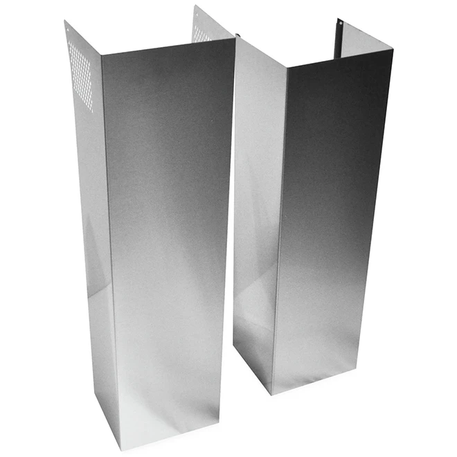 This Whirlpool(TM) extension kit replaces the chimney that comes with the hood. It is made for wall hoods and 9 ft. (2.7 m) to 12 ft (3.65 m) ceilings. It is backed by a 90-day warranty.