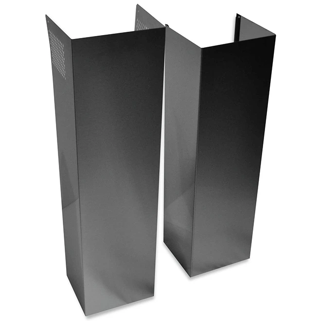 This easy-to-install Whirlpool(TM) extension kit is suitable for 12′ ceilings. This extension reaches 12′ when installed at 32″ above the cooktop or higher. This stainless steel-finish extension kit comes with a 90-day limited warranty. Check hood vent installation instructions for installation height prior to use.