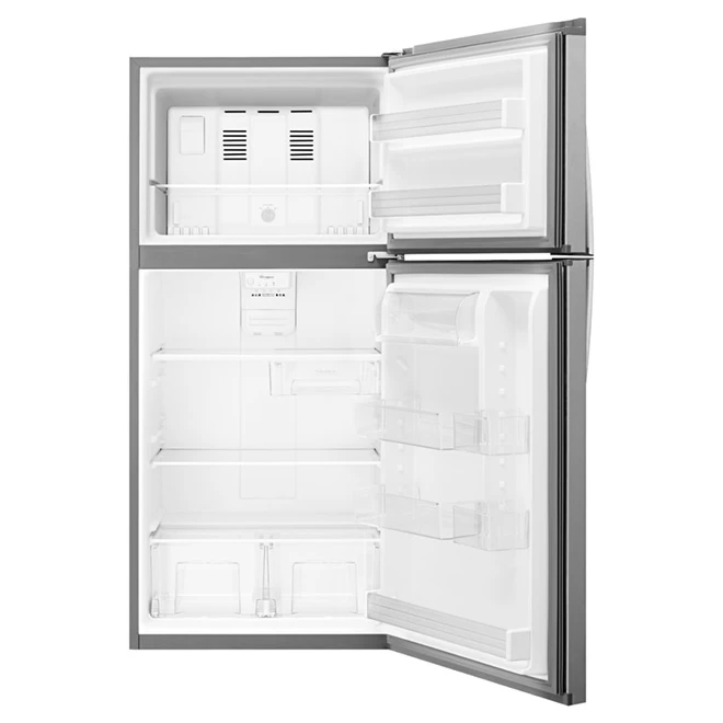 There’s always a place for fresh and frozen favourites inside the 30-inch wide top-freezer refrigerator with 19 cu ft capacity. Finding food is easy thanks to energy-efficient LED interior lighting. The Flexi-Slide bin quickly moves side-to-side for more convenient storage options above the refrigerator crisper. Six door bins will help you store more, so there will always be room for what you want, where you want it, inside this top-freezer refrigerator with electronic temperature controls. Plus, you won’t have to fill ice trays again thanks to the compatible, easy-to-install EZ Connect icemaker kit (icemaker kit sold separately).